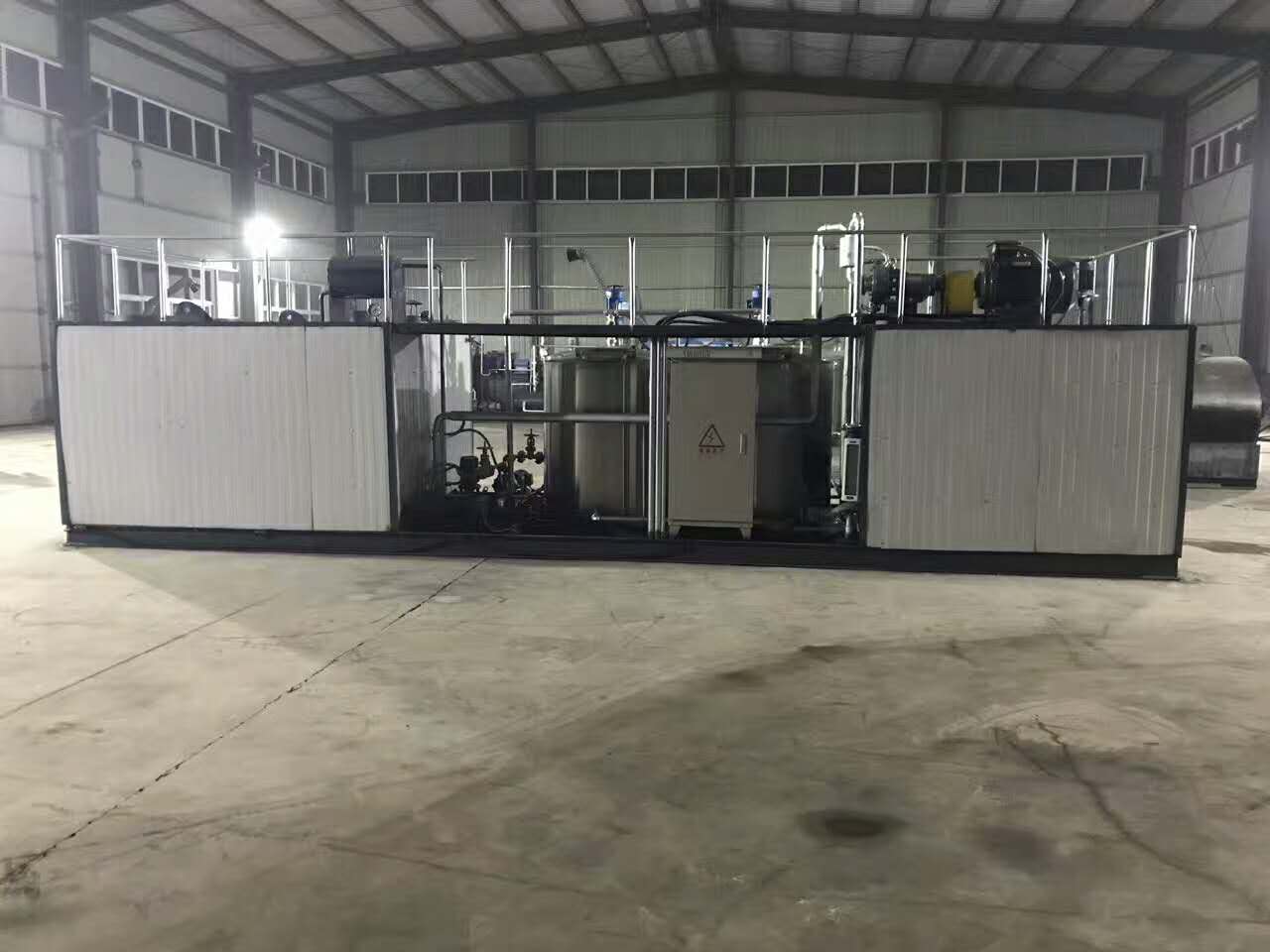 乳化瀝青機組由瀝青過渡罐、乳化液摻配罐、成品罐、調(diào)速瀝青泵、調(diào)速乳液泵、乳化主機、成品輸送泵、電控柜、大底板、管道、閥門等組成。