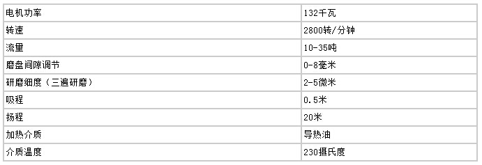 高速剪切均化磨技術(shù)參數(shù)(20T/小時(shí))