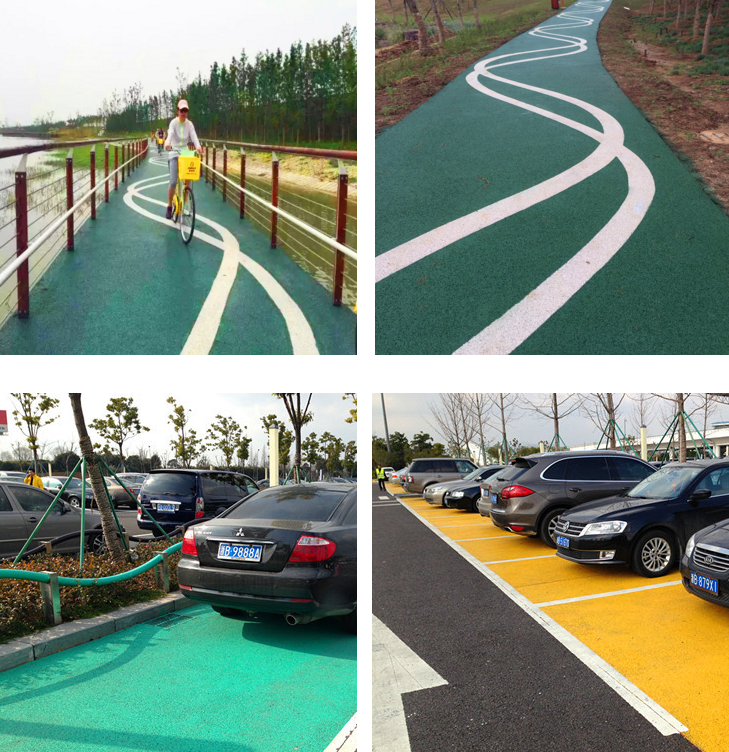 彩色瀝青是一種新型環(huán)保的筑路材料,再與各種顏色石料、色料和添加劑等材料拌合,通過攤鋪、碾壓便形成具有一定路用性能的混泥土路面;彩色瀝青路面給城市道路帶來很多的便利。多用于下面幾個(gè)地方